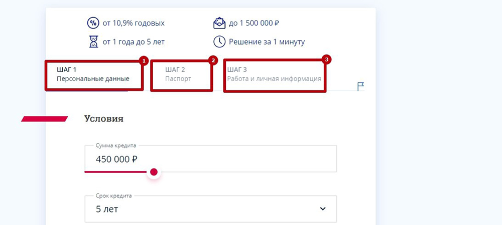 Оформить заявку на кредит можно на сайте банка или в любом из его отделений.
