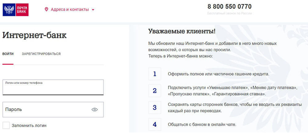 Для выполнения этой процедуры обращаются лично в Почта Банк с гражданским паспортом. Ответственный сотрудник после проверки личности сообщит код по стандартной схеме с применением SMS-сообщения.