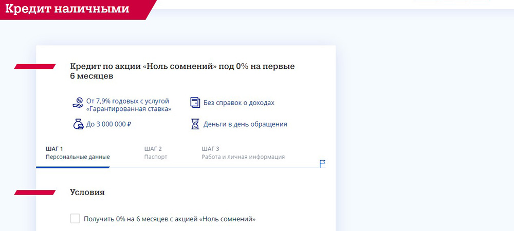 При заполнении заявки на кредит помимо личных данных, потенциальный заемщик должен будет сообщить ИНН и контактный телефон работодателя. Кроме того, хотя официально этот банк не требует подтверждения доходов, вероятность получить одобрение существенно выше у тех, кто сообщит эту информацию. При этом предпочтение отдается не справке по форме банка или 2-НДФЛ, а данным из пенсионного фонда.