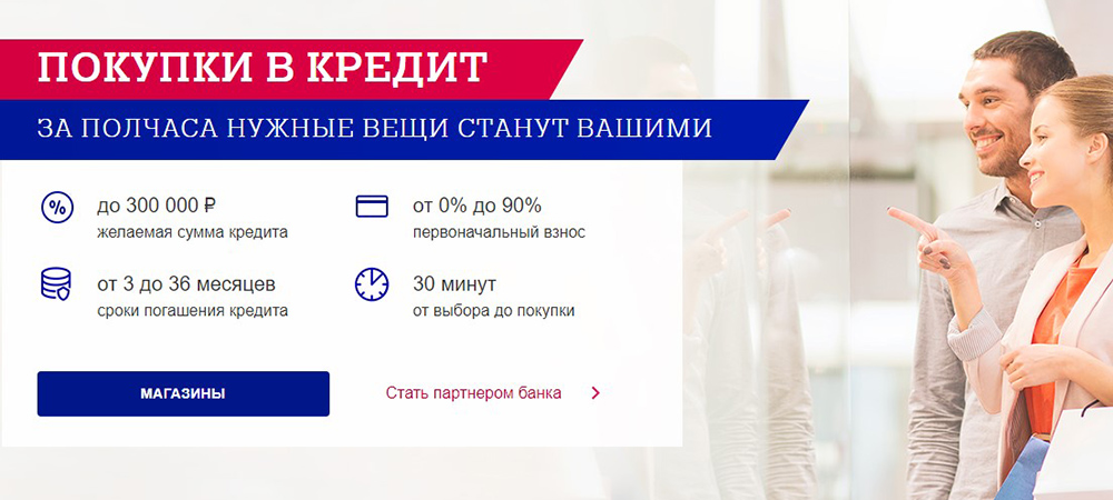 Среди линейки продуктов есть услуга «Покупки в кредит». Она предоставляется только в магазинах-партнерах финансовой организации. Среди них такие бренды, как «Снежная Королева» и «Много Мебели». Подобный заем выдается на следующих условиях: